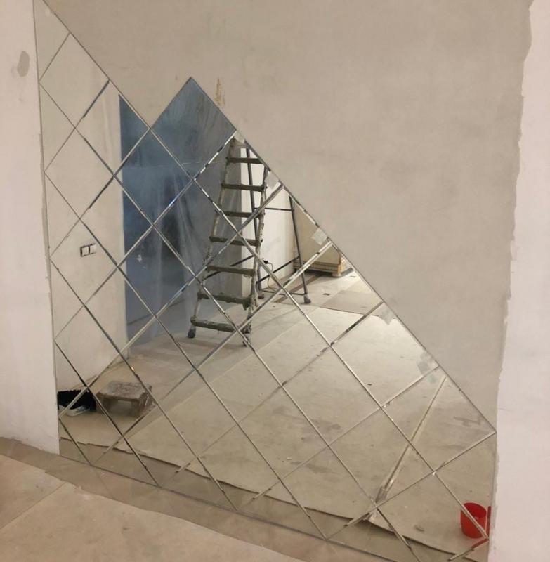 Использована зеркальная плитка "вытянутый ромб" с фацетом.