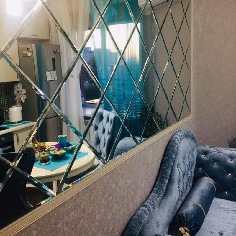Использована зеркальная плитка вытянутый ромб размерами 20х34.
